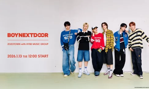 ZOZOTOWN20周年を記念した特別企画「ZOZOTOWN with HYBE MUSIC GROUP」の第3弾として、6人組ボーイグループ「BOYNEXTDOOR」との限定オリジナルアイテムが2026年1月13日よりZOZOTOWNで販売されます。カジュアルで遊び心あふれる全10型がラインナップ。