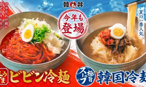 カルビ丼とスン豆腐の専門店「韓丼」から、毎年大人気の季節限定メニュー「韓国冷麺」と「ビビン冷麺」が今年も登場します!さっぱりとコク旨を両立した味わいで、暑い季節にぴったりのひんやり爽快な一品です。